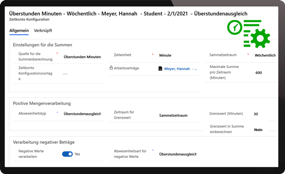 You can optimally adapt the solution to your wishes and requirements. The time accounts also allow HR to implement "stacked recording of overtime".Time accounts make the handling of working hours, overtime and extra time even more flexible and enable HR to view even more accurate analyses. Time accounts can be customized for each employee in the employment contract. For example, the account can be calculated on a daily, weekly or monthly basis, or thresholds can be defined.