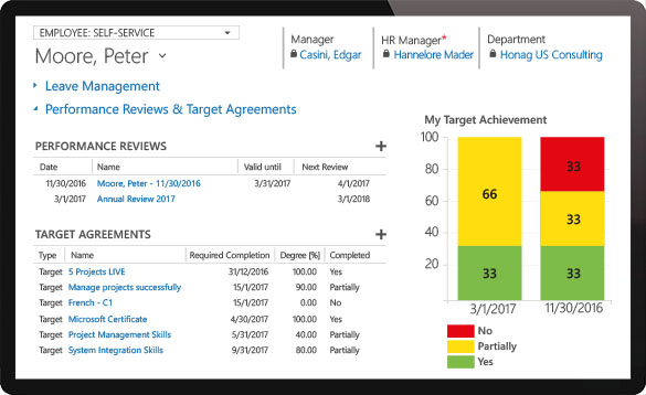 - Track performance reviews and target agreements at any time
