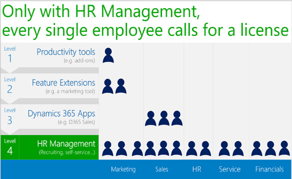Hubdrive extends Microsoft Dynamics 365 with basic functions that are needed by almost every employee of your customers. Recruiting, HR management or time tracking are good examples.