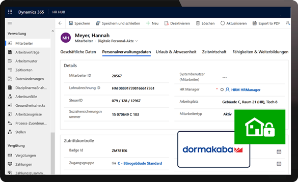 Zeiterfassung und Zutrittskontrolle in einer Lösung? Kein Problem! Mit der Integration zu Dormakaba, dem Weltmarktführer im Bereich Zeiterfassung/elektronische Zutrittskontrolle müssen Sie sich ab sofort nicht mehr um verschiedene Systeme kümmern. Sie finden alles in Ihrer vertrauten HR for Dynamics Lösung.