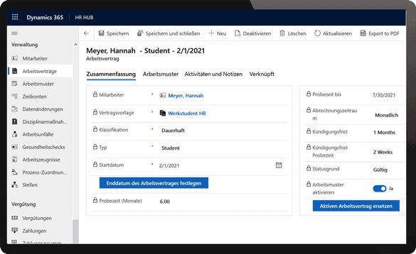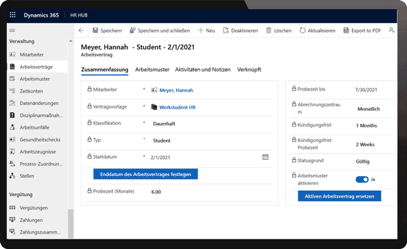 Ändert sich das Arbeitsmuster eines Mitarbeiters, wie beispielsweise die Schicht in einem Schichtsystem, oder die Tage, die ein Auszubildender im Büro arbeitet, kann HR das aktuelle Arbeitsmuster einfach deaktivieren und durch ein neues ersetzen. Das schafft Transparenz über die vergangenen Arbeitsmuster eines Mitarbeiters.