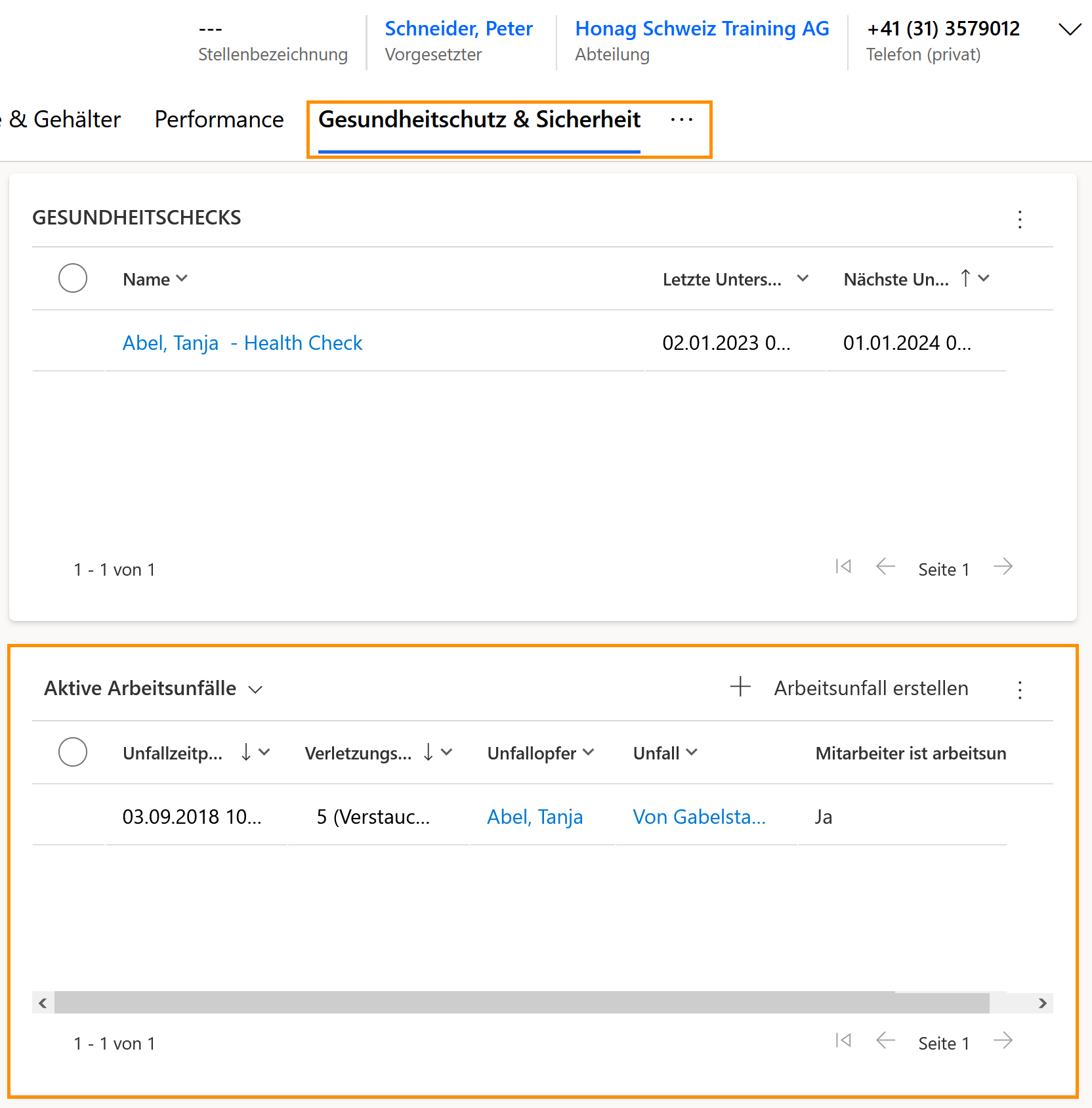 Der Datensatz kann auch direkt in der digitalen Personalakte des Mitarbeiters unter der Registerkarte Gesundheitsschutz & Sicherheit eingesehen werden.