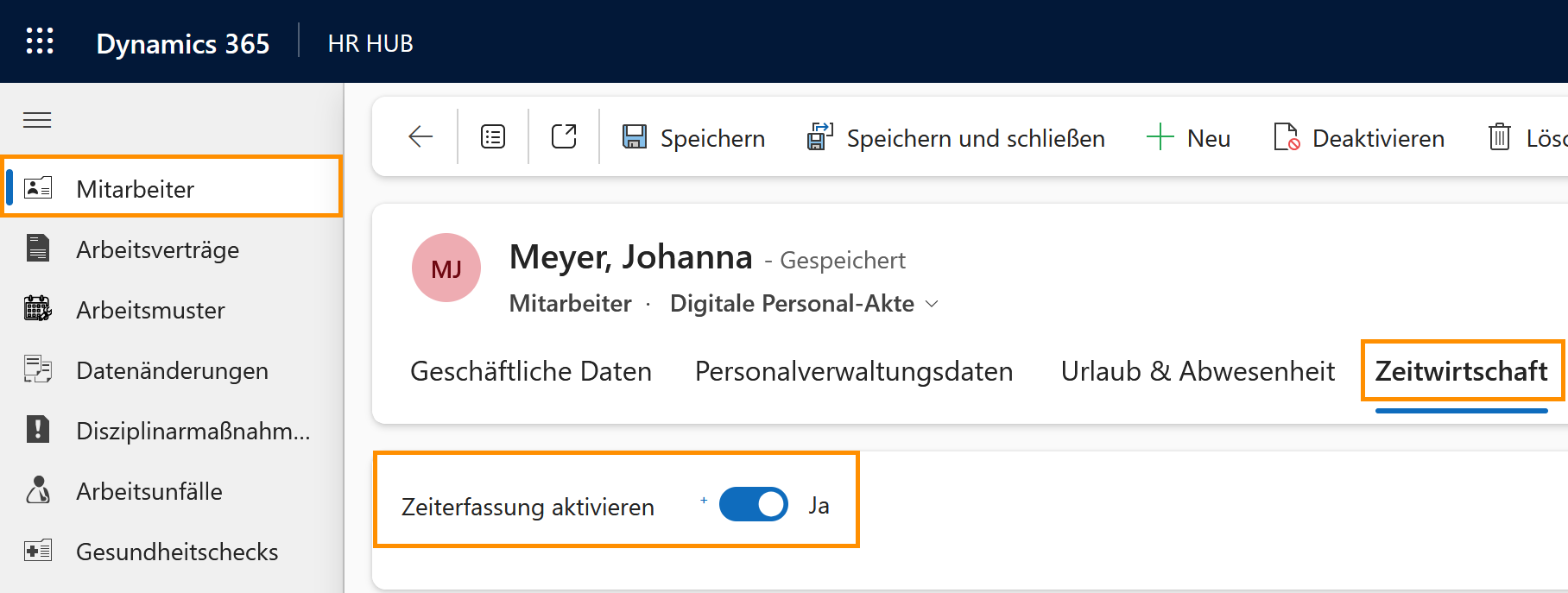- Öffnen Sie die gewünschte Mitarbeiterakte