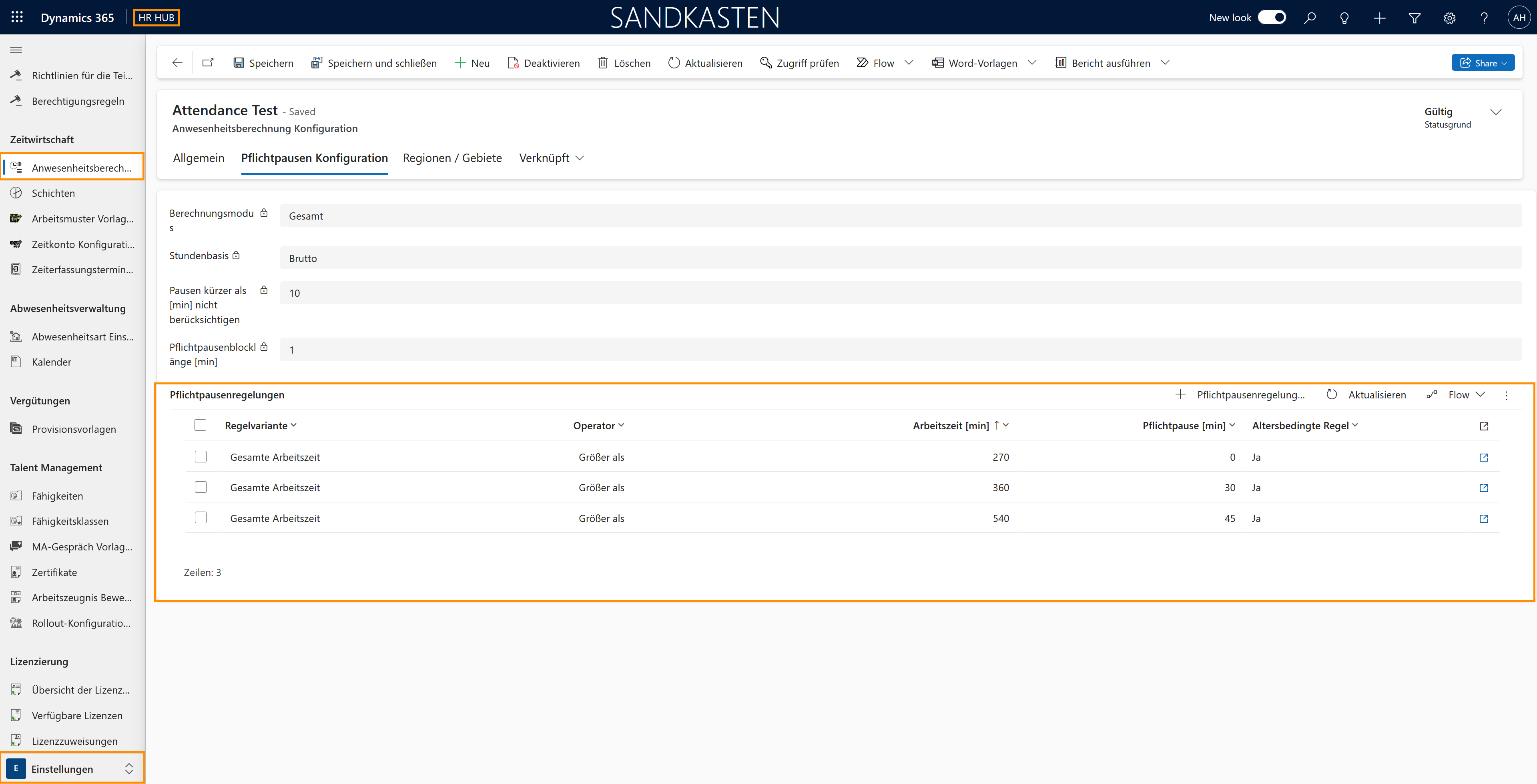 - Klicken Sie unter Zeitwirtschaft auf Anwesenheitsberechnung