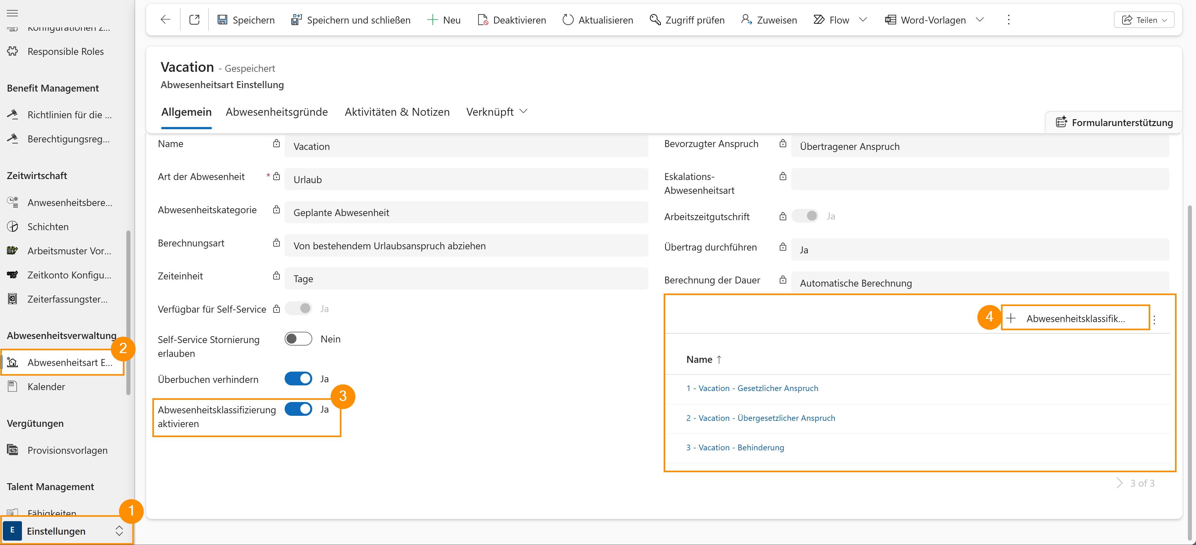 - Öffnen Sie die Abwesenheitsart, die Sie konfigurieren möchten
