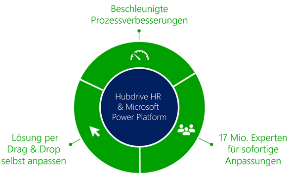 Fachabteilungen, die IT oder IT-affine HR-Mitarbeiter können mit der Microsoft Power Platform und Hubdrive HR folgende Anpassungen selbst vornehmen.