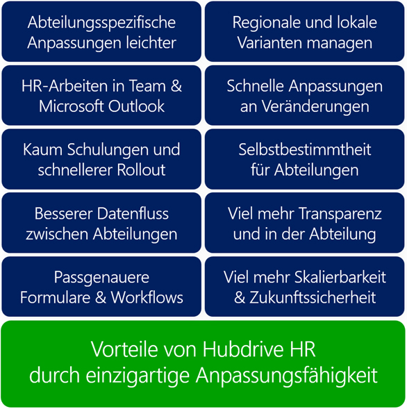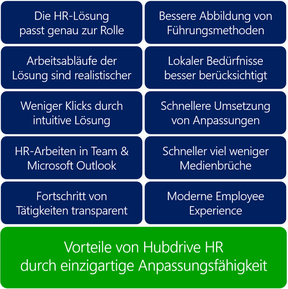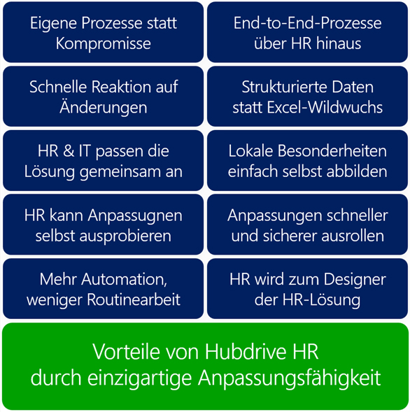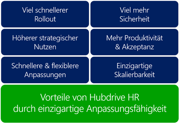Mit der Anpassungsfähigkeit von Hubdrive HR erzielt die IT sofort spürbare Verbesserungen im Vergleich zu klassischen HR-Systemen