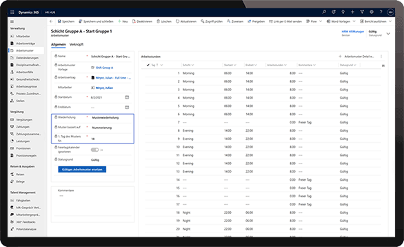 Die Funktion "Arbeitsmuster" ermöglicht es HR-Managern, unregelmäßige Arbeitszeiten einfach zu planen und Kurzzeitänderungen im System zu berücksichtigen.