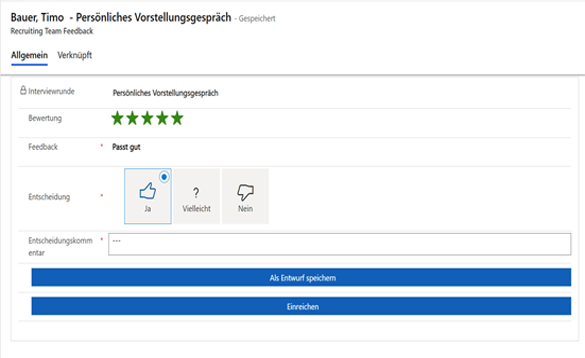 Diese neue Funktion im Recruiting ermöglicht es, dass Mitarbeiter und zukünftige Kollegen des Fachbereichs oder die Management-Etage als Mitglieder des Recruiting-Teams in den Interview-Phasen den Bewerber einzeln bewerten können. Durch die Einbeziehung der Meinung eines ganzen Teams können im Auswahlprozess mehrere Sichtweisen auf den Bewerber dokumentiert werden. Somit ist es jetzt noch einfacher, geeignete neue Teammitglieder zu finden!
