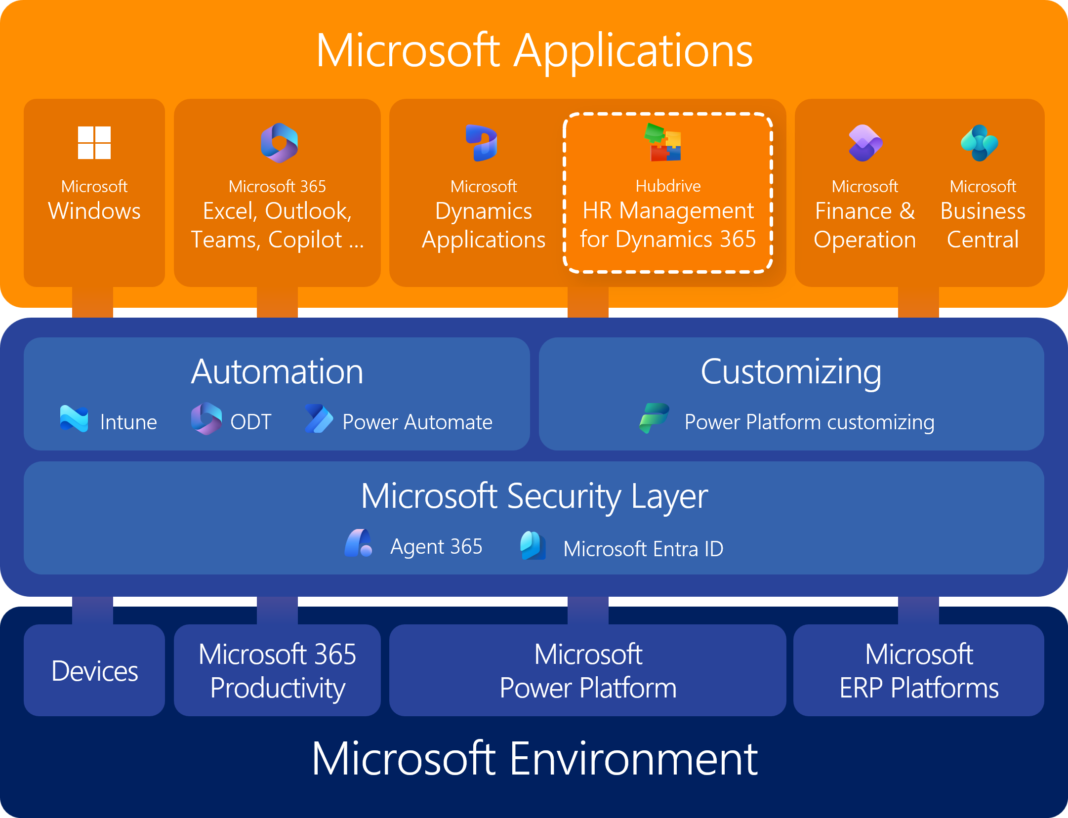 - Hubdrive HR can be deployed on all four Microsoft platforms – Microsoft 365, Power Platform, Business Central and Finance & Operations. Technically, Hubdrive HR is a native solution built on the Microsoft Power Platform.