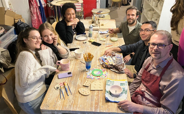 Our marketing team closed their laptops and enjoyed the moment while pottery making and painting ceramics.