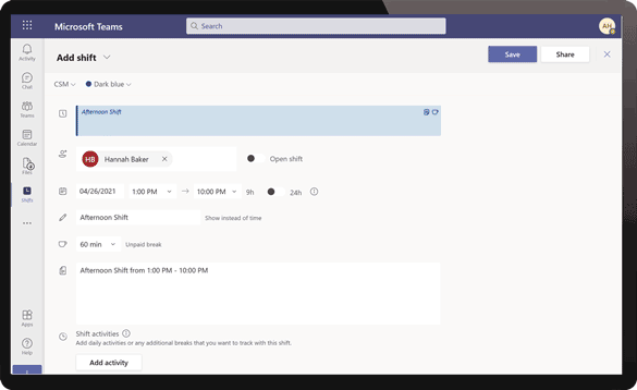 From now on, HR for Dynamics offers you a direct integration to Teams Shift, Microsoft's shift scheduling tool. Teams Shift offers a convenient and visual planning tool for scheduling employees' working hours. Where once a lot of time and effort had to be spent on sophisticated shift planning, now a few clicks is all it takes. The shift schedule is visible to all authorized team members directly in the Teams app. There is no need to switch to another application! Employees from different departments, with different working hours and employment terms can easily be assigned to different shifts in Microsoft Teams Shift - without duplicate data maintenance, of course, as all working hours are transferred directly to HR for Dynamics! Scheduling shifts has never been so easy!