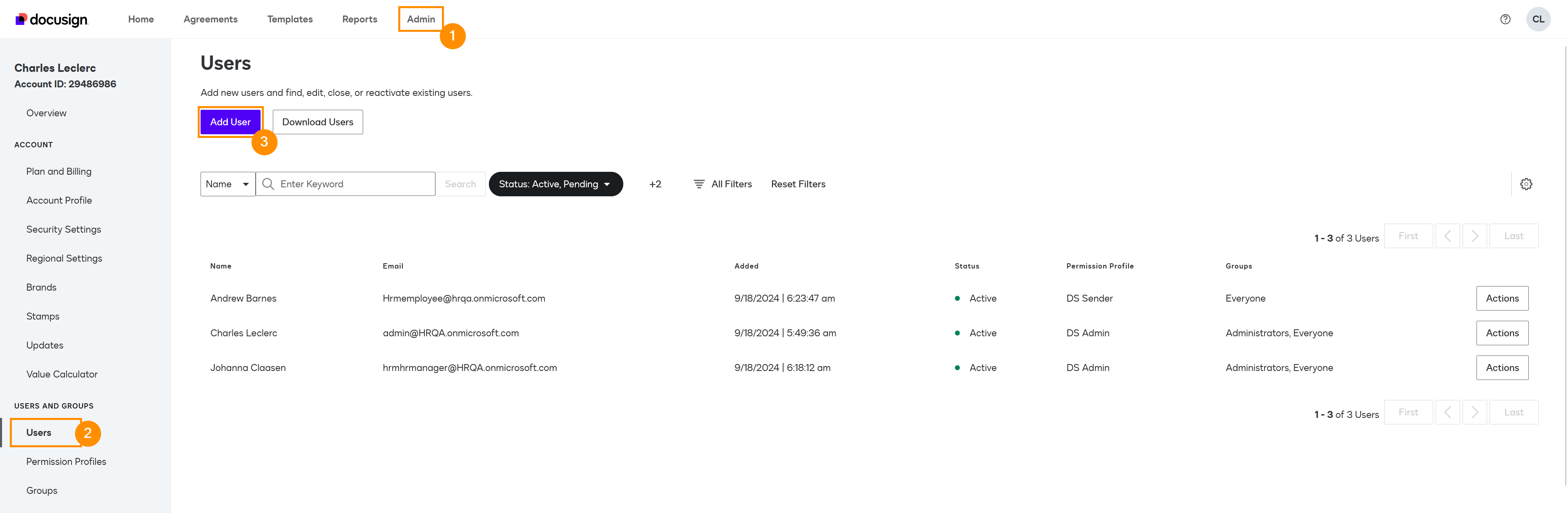 - If the new user is supposed to create new DocuSign Envelopes with Employment Terms from your system later on, they need the DS Admin Permission Profile