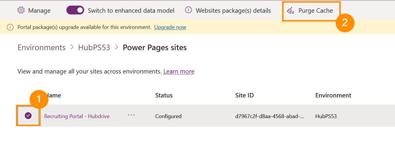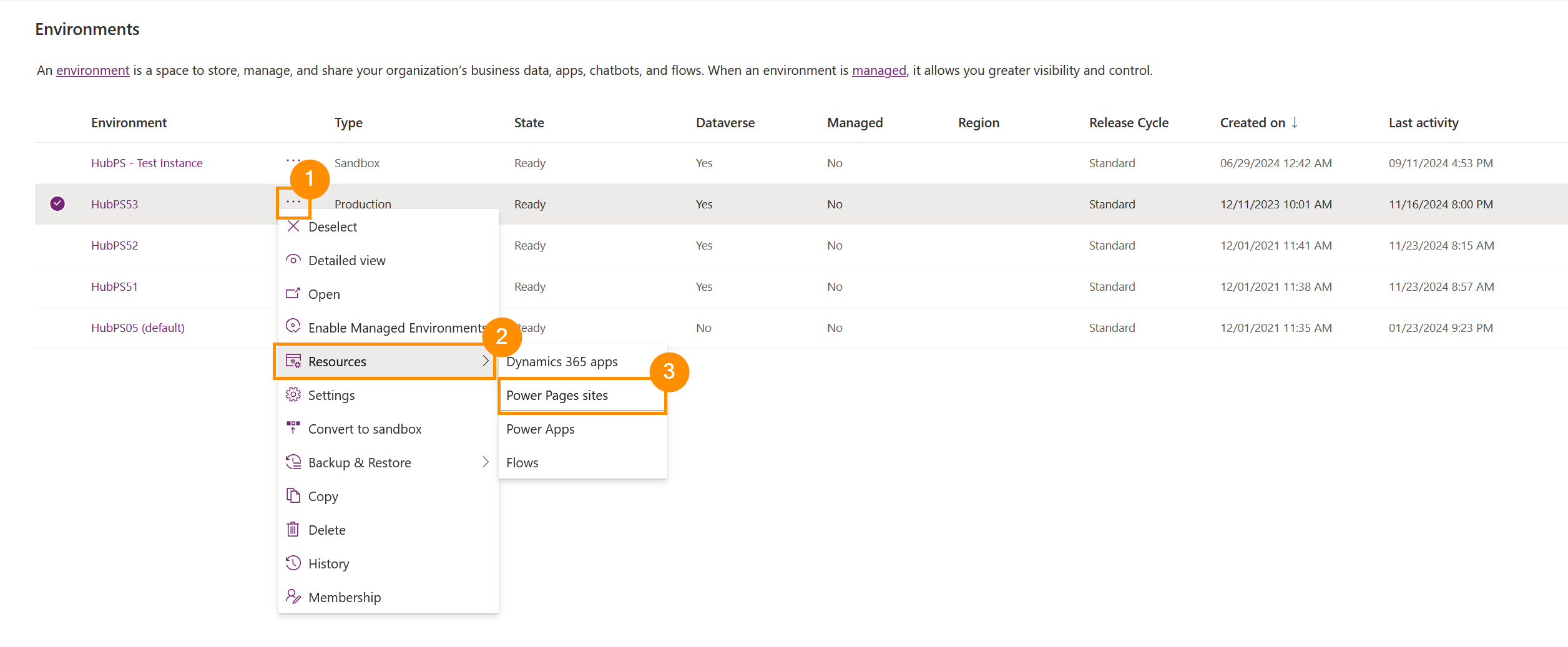 - Next to the Environment that includes your Recruiting Portal, click on the ellipsis (3 dots)