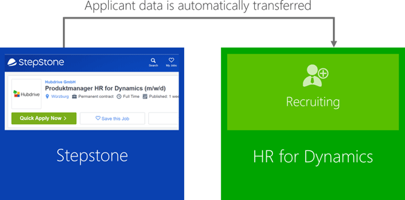 In addition to the possibility to publish job advertisements directly on the StepStone JobFeed, HR for Dynamics now also provides an integration to StepStone QuickApply.