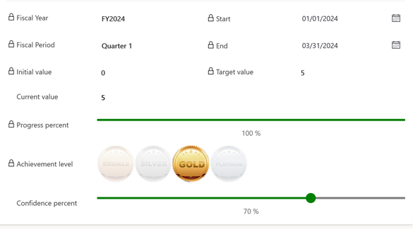 So you can work very flexibly with KPIs. For example, KPIs can be created with the goal of reducing something. As an example: Your support department has 1000 open support requests (initial value) - 500 support requests are set as the target value for the coming quarter. - If your department has 750 as current value (CV) in the middle of the quarter, the progress will be 50%.